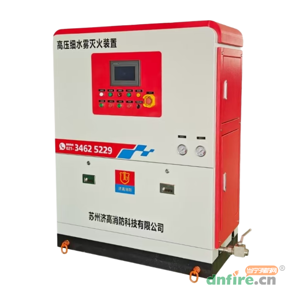 泵组式细水雾灭火主要是靠雾化的细水雾滴群,通过细水雾喷头,覆盖在着火点上,经火焰的温度使水珠体积急剧膨胀,膨胀过程中大量吸收热量,形成水汽帘,达到降温隔绝氧气使火焰熄灭,能有效扑灭A、B、C类火灾,具有结构简单、便于维护、绿色环保的特点。