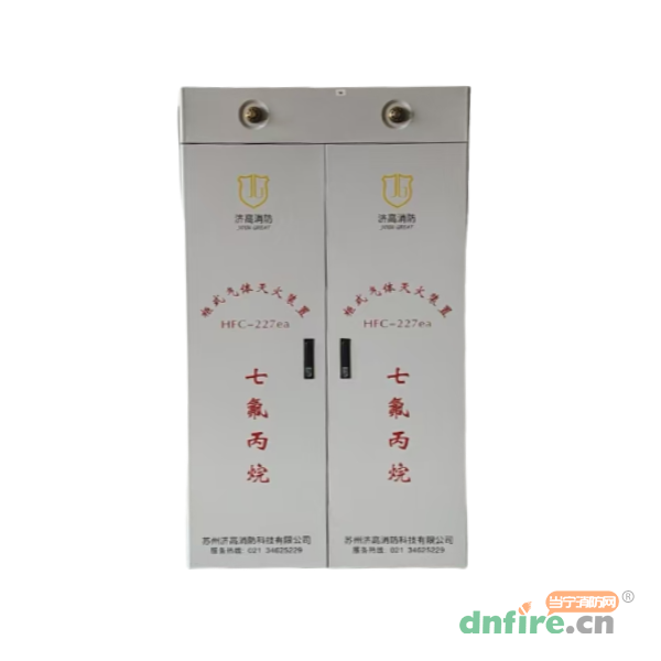 柜式七氟丙烷灭火装置主要由灭火剂瓶组(含压力显示器)、驱动部件、管路、喷嘴、信号反馈装置等组成。适用于防护区面积在500m、容积在1600m以下的场所使用,对于不同容积大小的防护区可选择不同规格的灭火装置。由于储瓶置于柜体内,并将喷嘴安装在柜体上,减少了占地面积,能使灭火剂迅速、均匀地充满整个防护区,具有施工安装简便、工程投资小等特点,是工程上广泛应用的一种产品。